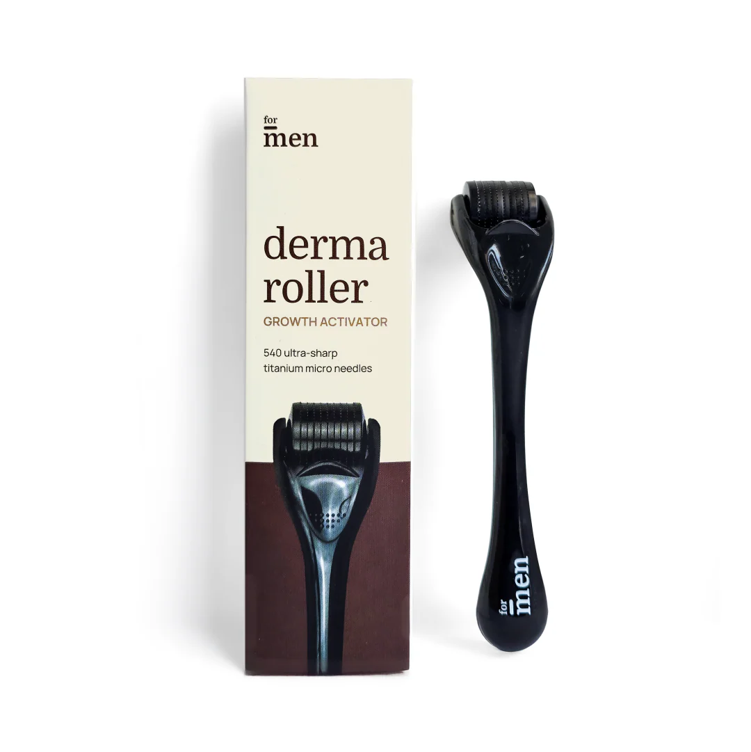 Derma Roller is a hand held device with 540 titanium alloy micro needles that is used to stimulate hair growth. It helps improve the absorption of topical applicators like Minoxidil for improved nourishment.